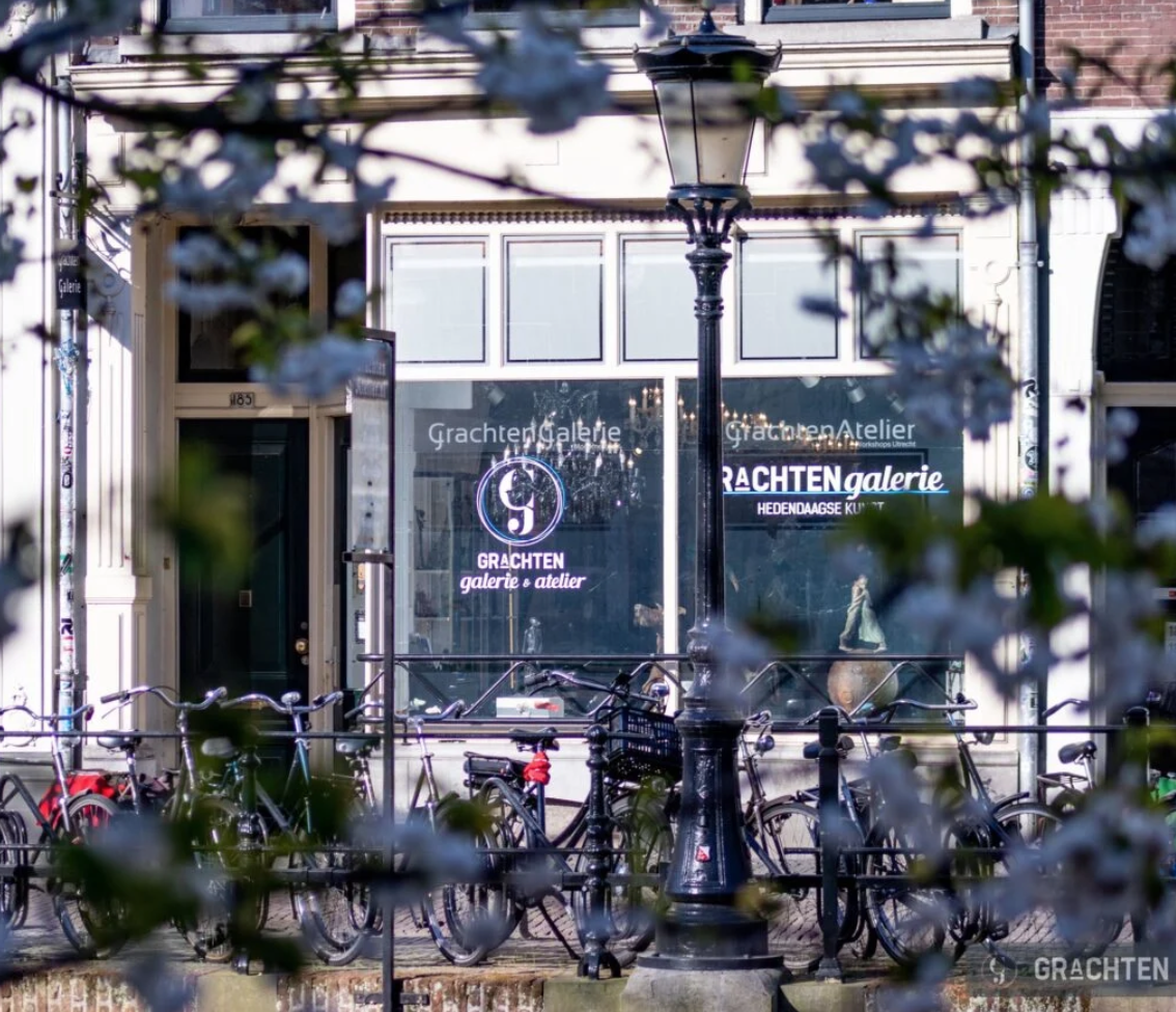 De Grachtengalerie bevindt zich op een van de mooiste plekjes van Utrecht – de OudeGracht 185. De dames van de Grachtengalerie werken samen met kunstenaars waar hun ogen van gaan twinkelen en die zij bewonderen om de enorme concentratie die zij hebben op het ontstaan- en maakproces van hun kunstwerken.
